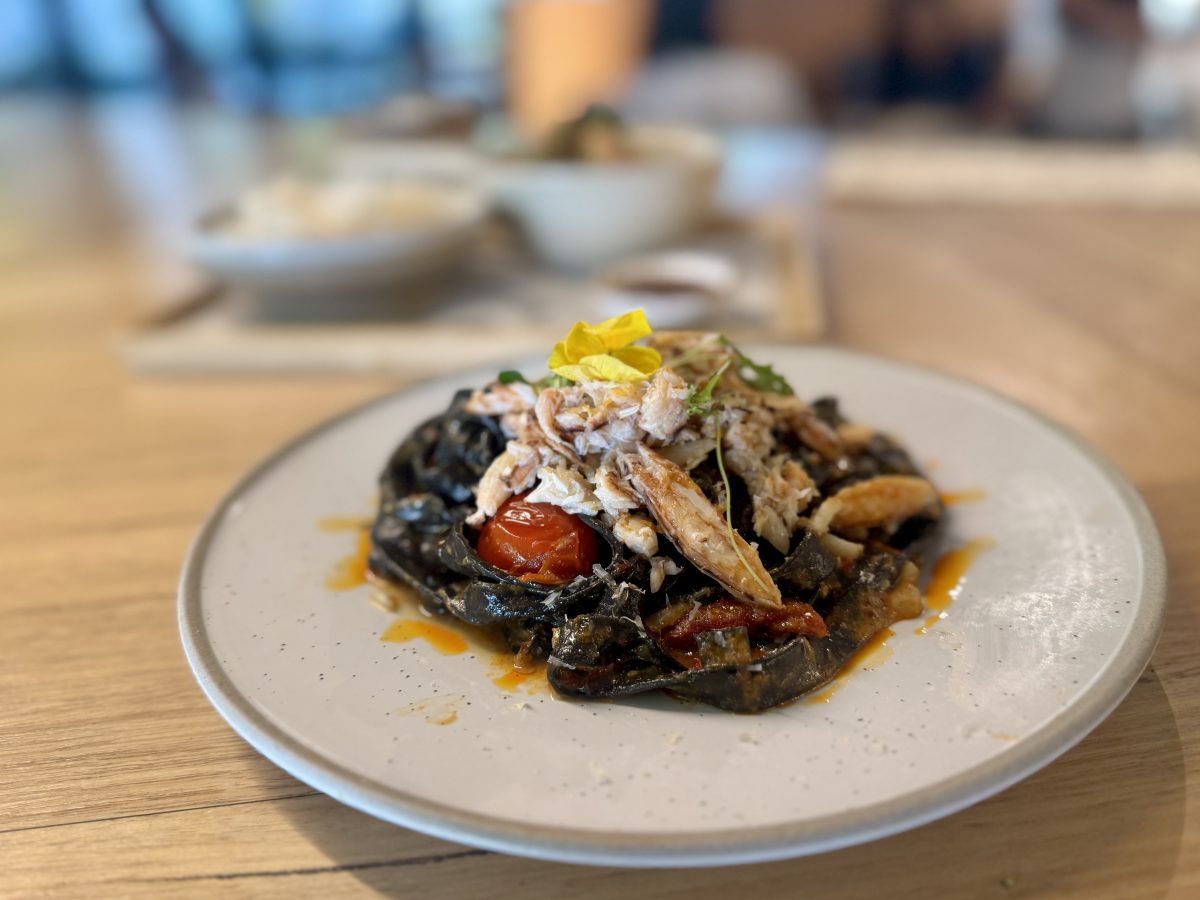 The dish that absolutely steals my taste buds is the Tom Yum Linguine. Glossy, al dente squid-ink linguine, combined with fresh crab meat, tossed in a creamy, spicy sauce inspired by Tom Yum flavours. Infused with lemongrass, galangal, and kaffir lime, and finished with grilled cherry tomatoes and shaved parmesan, it’s a seamless blend of Thai and Italian influences-a must-try!