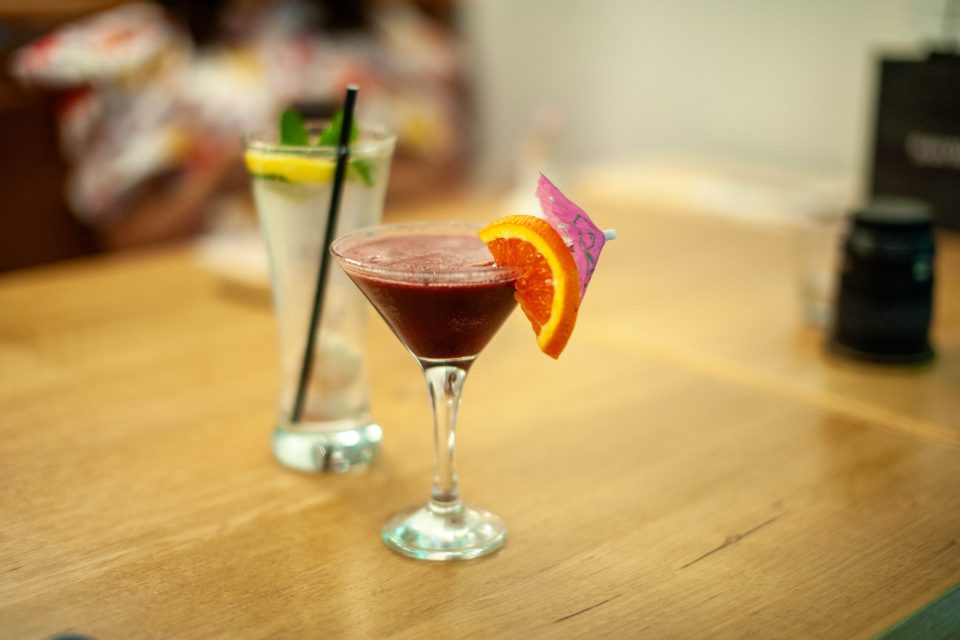 The Rosie Romance mocktail tastes like an elevated fruit punch, blending elderflower tonic with a splash of strawberry syrup and garnished with dried rose petals. Its flavour profile is rich and layered; the watermelon agave adds grassy undertones for full-bodied sips.