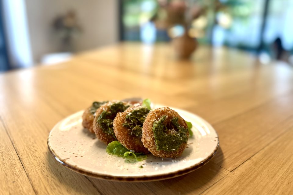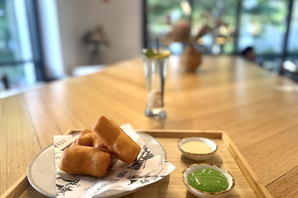Finally, dessert brings pure joy with sweet Chinese doughnuts: fluffy, golden-fried treats served with a pandan custard dipping sauce made from fresh pandan leaves. It’s the perfect ending to a wonderful dinner.