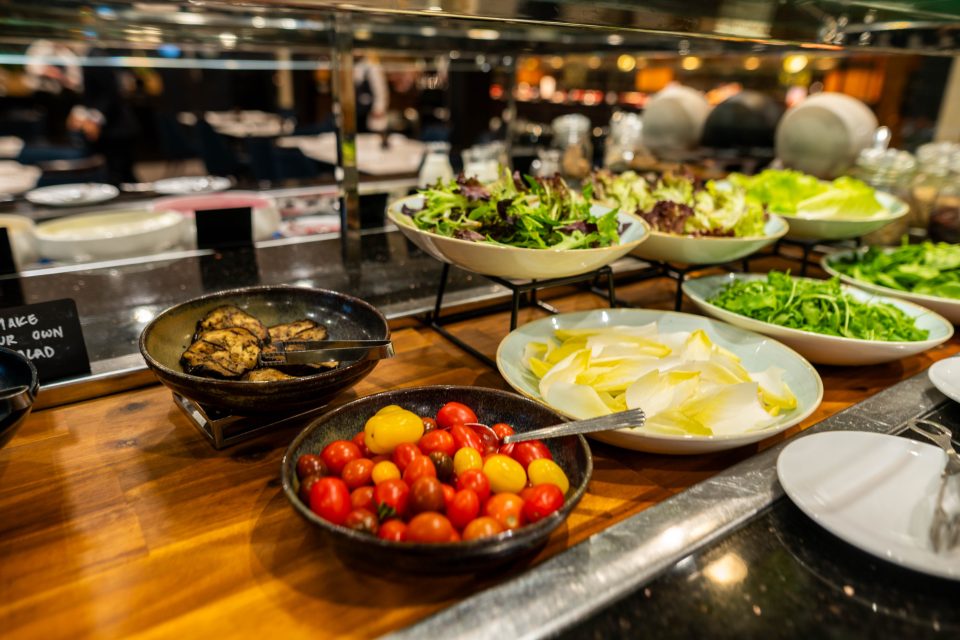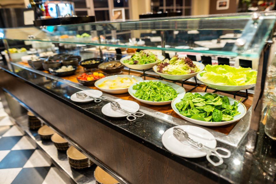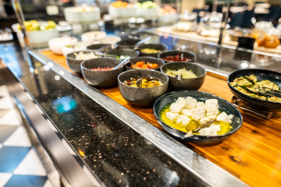 Today, we’ve come to rediscover everything the buffet has to offer. It stretches decadently across inviting stations, set against a gleaming expanse of black and white diamond tiles.