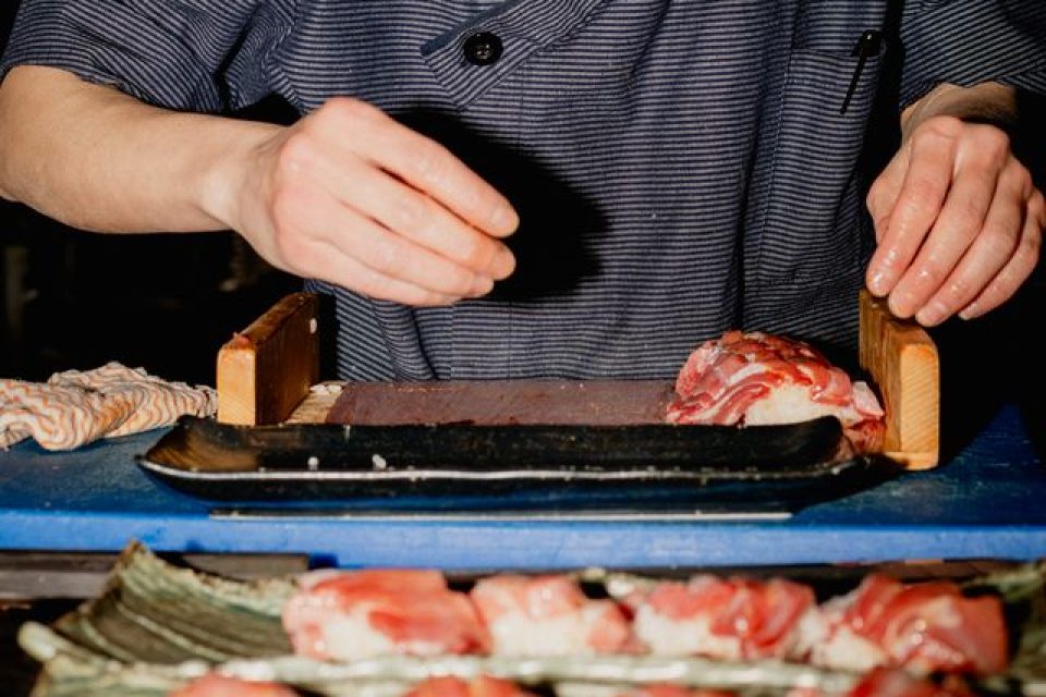 As Mitsu carves, Koto’s head chef and sushi expert Shinya transforms the tuna into exquisite canapés.