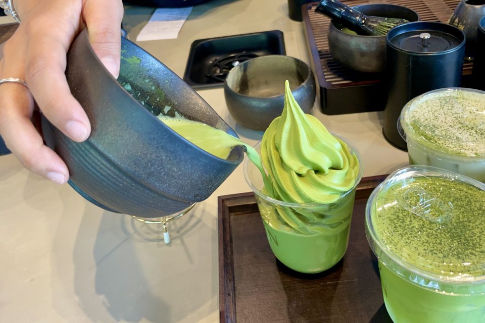 Ujin has four different blends of matcha powder to taste, which are made from either the first or second harvest of tea leaves from different origins in Japan.