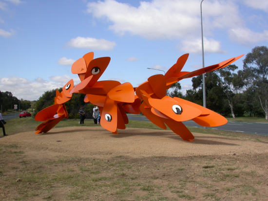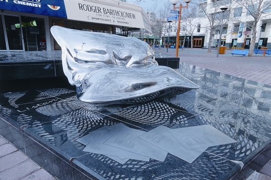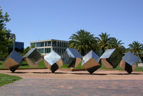 A series of highly-polished metal cubes appear to tumble across Margaret Timpson Park in the heart of the Belconnen Town Centre. Makes me fancy a Baileys on the rocks every time I drive past.