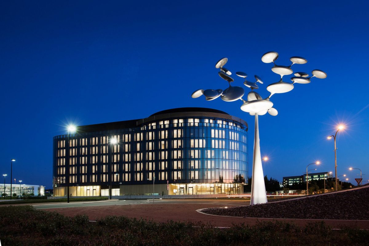 There are many, many different names for this large-scale, wind-activated kinetic sculpture by New Zealand artist Phil Price. According to Melissa Evens, head of marketing at the airport, people also lovingly refer to it as The Jetsons Tree, Jetsons Sculpture and Flying Saucers. Mentos Tree wins though.