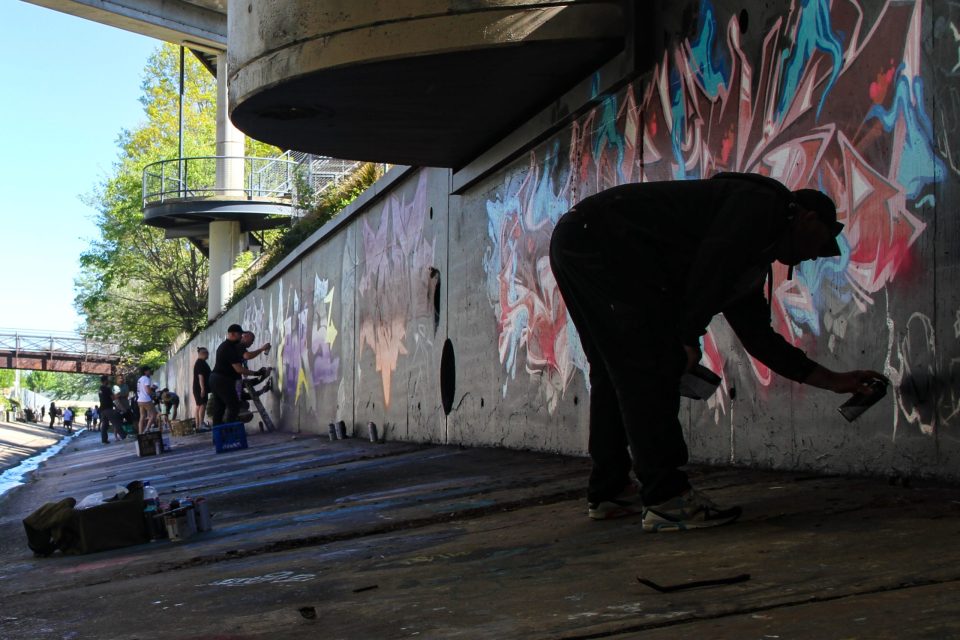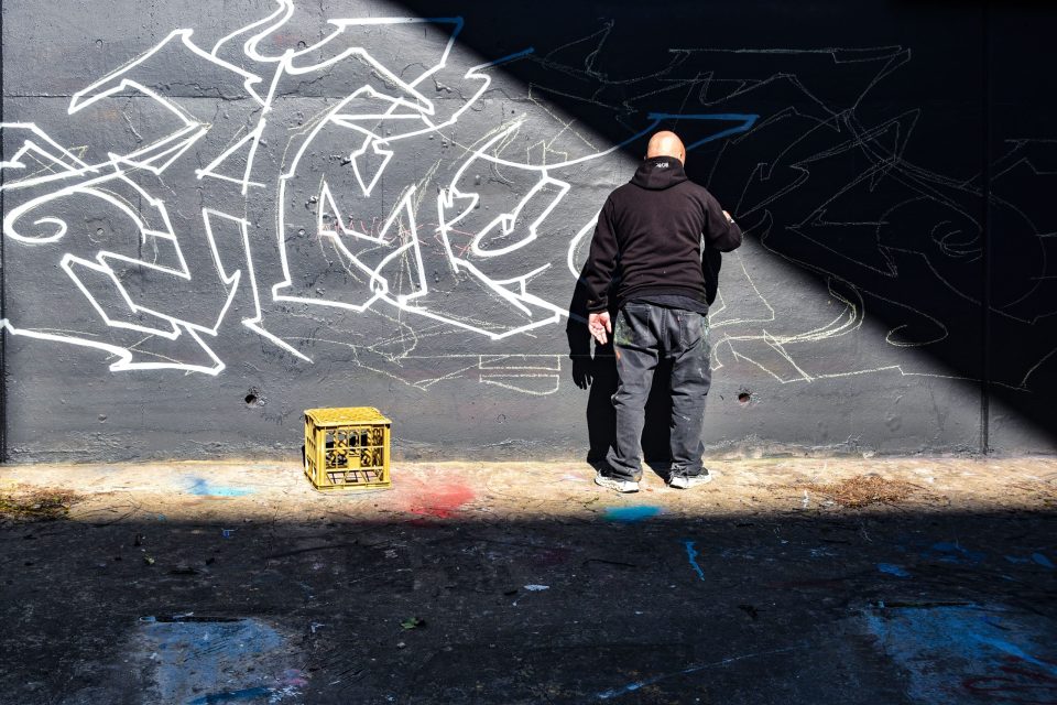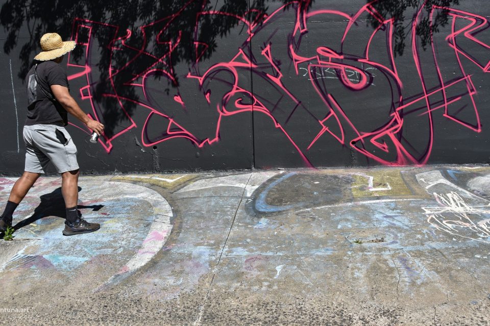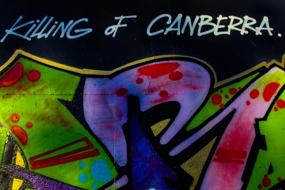 Last weekend, one cop sat and ate his lunch while dozens of artists spray painted Canberra’s concrete infrastructure, mere metres away.
