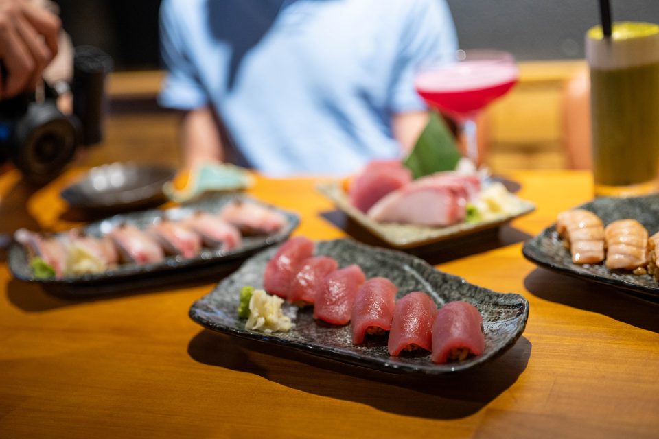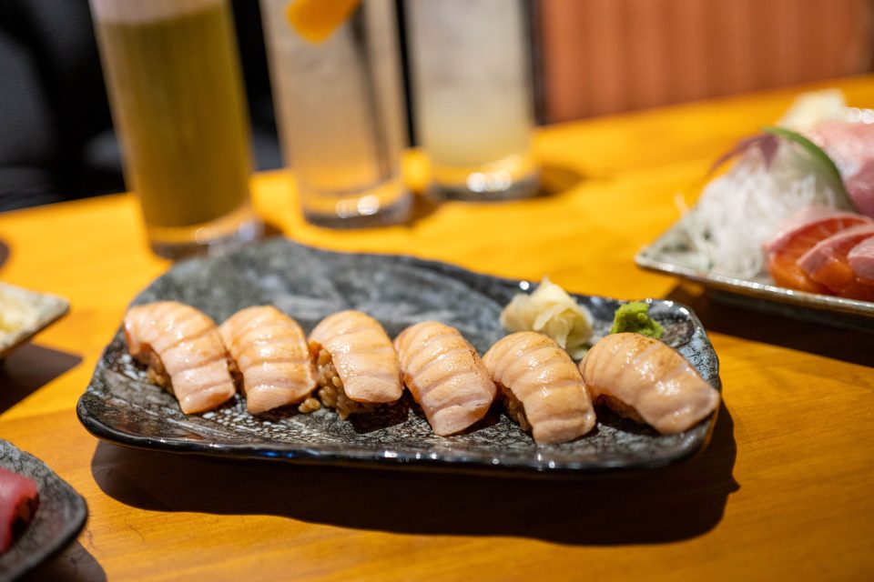 The sashimi is effortlessly melt-in-the-mouth. The slices of Tasmanian salmon, bluefin tuna, and Hiromasa kingfish are unapologetically chunky, but the texture and sweetness delight our taste buds.