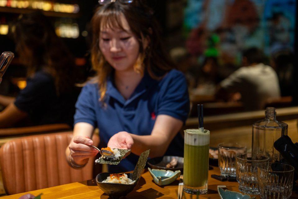 You are supposed to take the whole sushi in one bite. I don’t manage it, not even close. Plus, I want to savour all that is going on in this sushi: smooth umami, crunch, sweetness and pops of caviar.