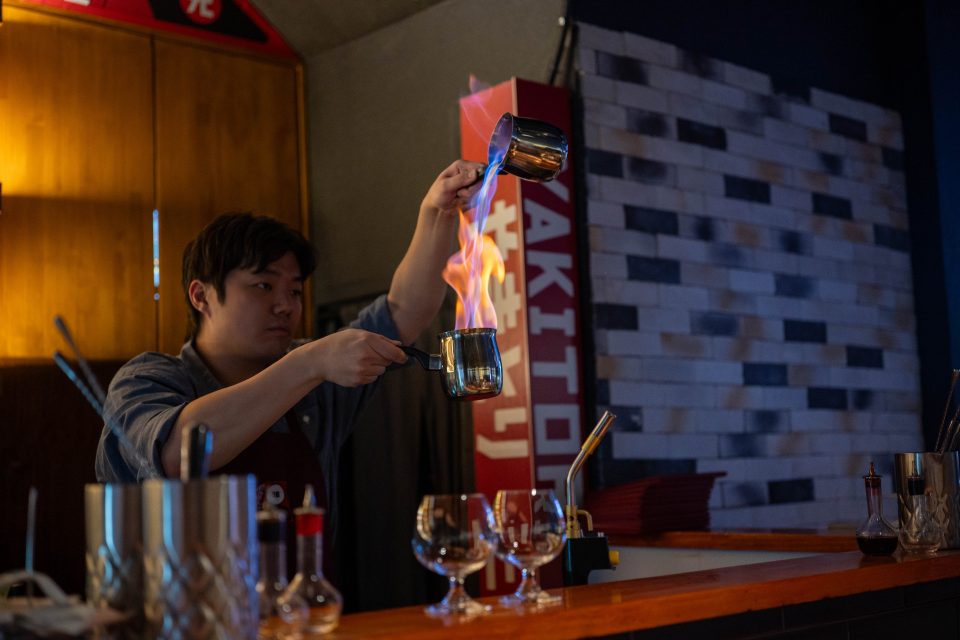 If you order a Miso Butter Blazer, the bar’s headliner, then you are in for some theatre watching it being made. Chefs make the miso butter in-house. It is their twist on a salted butter caramel beverage.